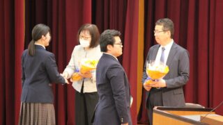 学校行事 転退任式 4月10日(金) 昨年度末の人事異動で転退任された先生方4名が、転退任式にお越しくださいました。在校生に向けた最後のメッセージをいただきました。2・3年生は先生方の熱い思いに応えるべく今年度より一層津山商業を盛り上げていきましょう。... 2026.04.16 学校行事津商ライフ2年団3年団