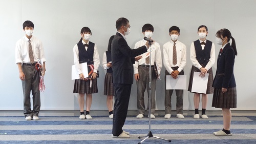 表彰伝達式 津商ライフ 2022.05.30 2022.05.27 5月25日(水) 生徒総会終了後、今年度最初の表彰伝達式が行われました。美作総体を中心に多くの頑張った個人、団体の表彰伝達をしました。おめでとうございました。