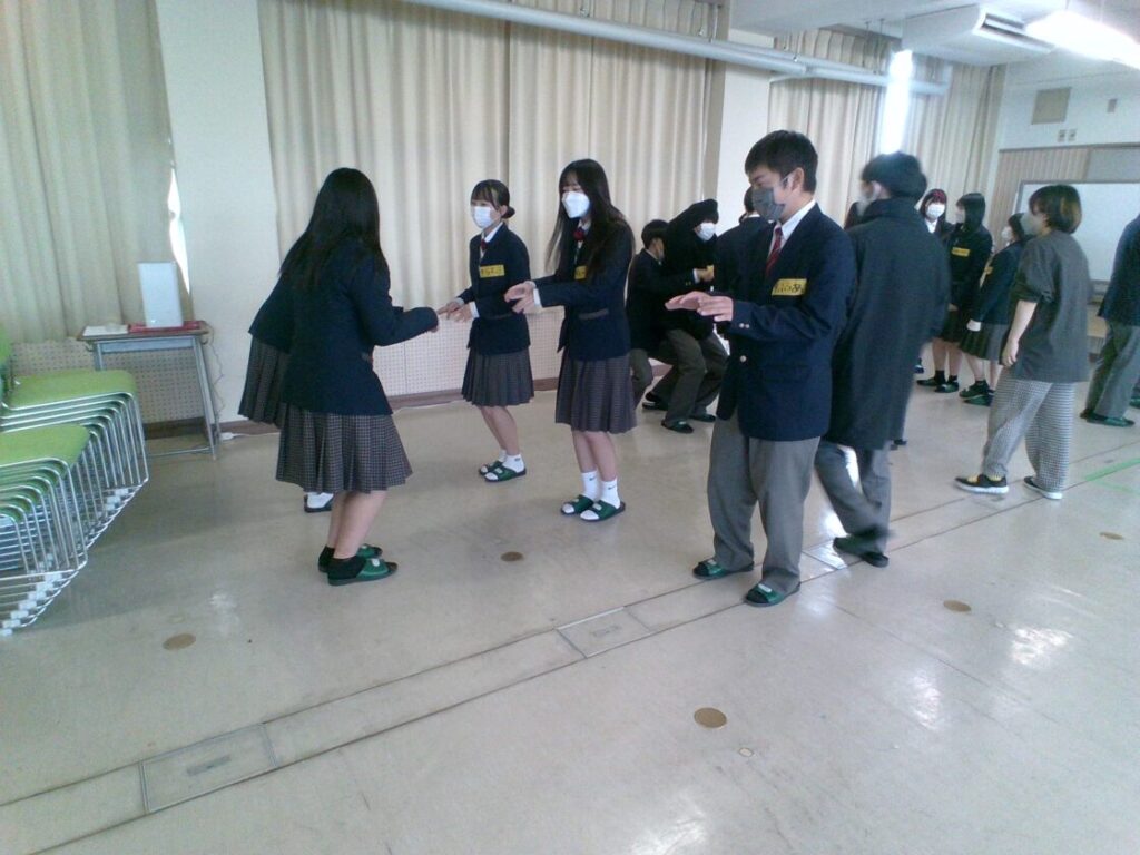 本日は言葉をしゃべらずに寸劇を行い、それが何を示しているのかを当てるというワークを実施しました。思ったよりも体だけで相手に物事を伝えるのは難しいという生徒もいました。