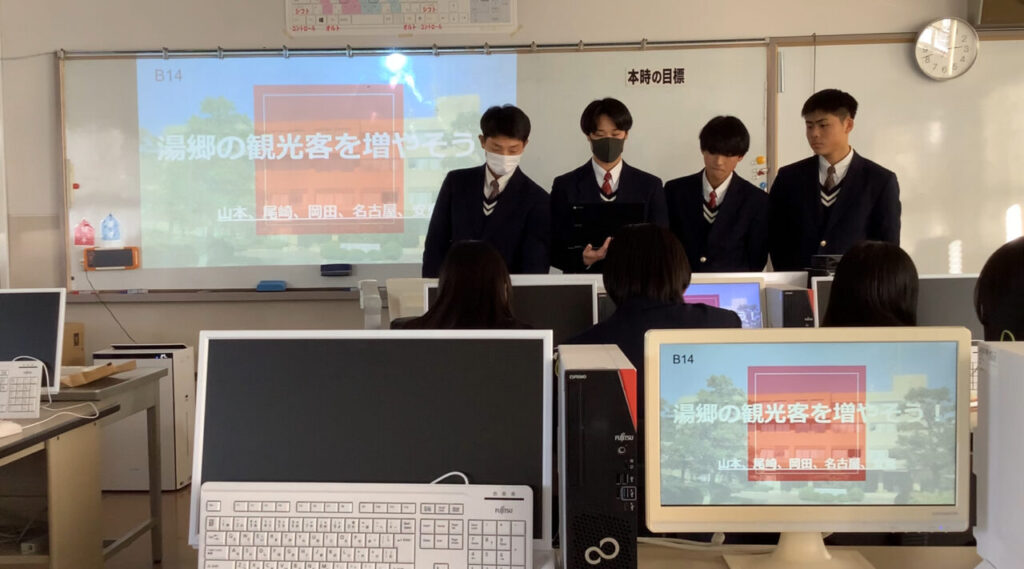 総合的な探究の時間⑲ 授業関連 2024.01.26 1月24日(水) 総合的な探究の時間の学習成果発表会を実施しました。今回は2年生だけでなく、1年生も発表を見に来ました。各発表ごとに質疑応答の時間が取られ、自分たちの探究の学びの深さを確認することもできました。今回の発表を1年生は来年度の自分たちがやる総合的な探究の時間に活かしてほしいと思います。また、2年生は来年度の課題研究や自分の進路に今年一年の学びを繋げてくれることでしょう。