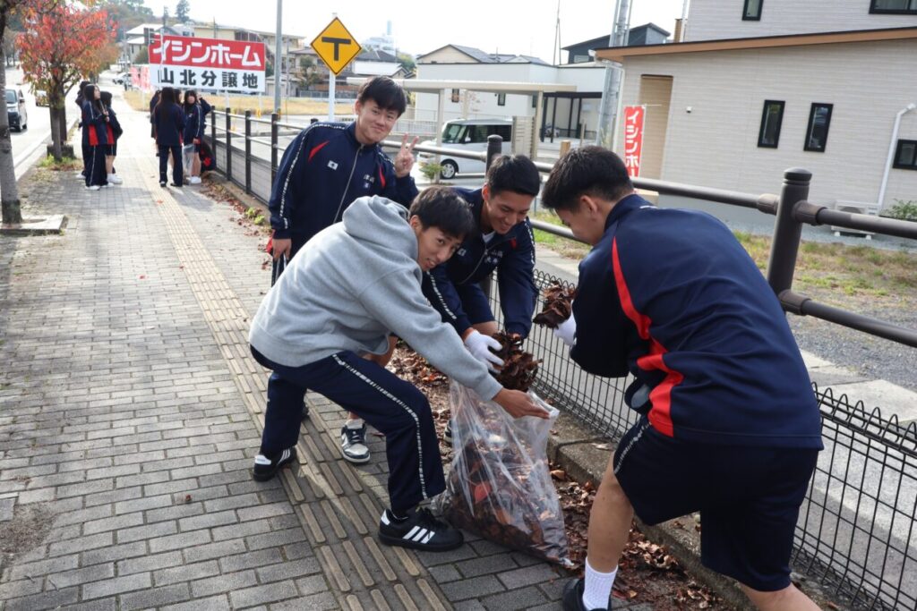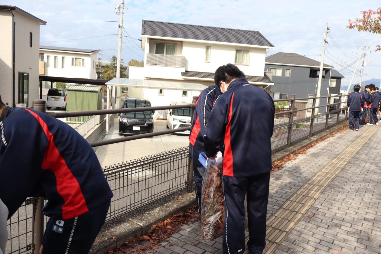 3年生清掃活動 ボランティア活動 2025.11.10 11月5日(水) 6限目LHRの時間に3年生全員で津山商業高校近隣の清掃活動を行いました。日頃から慣れ親しんでいる地域をより感じてもらい、自分たちの地域を愛してほしいと考えています。生徒達は楽しみながらポイ捨てのゴミや落ち葉を拾っていました。