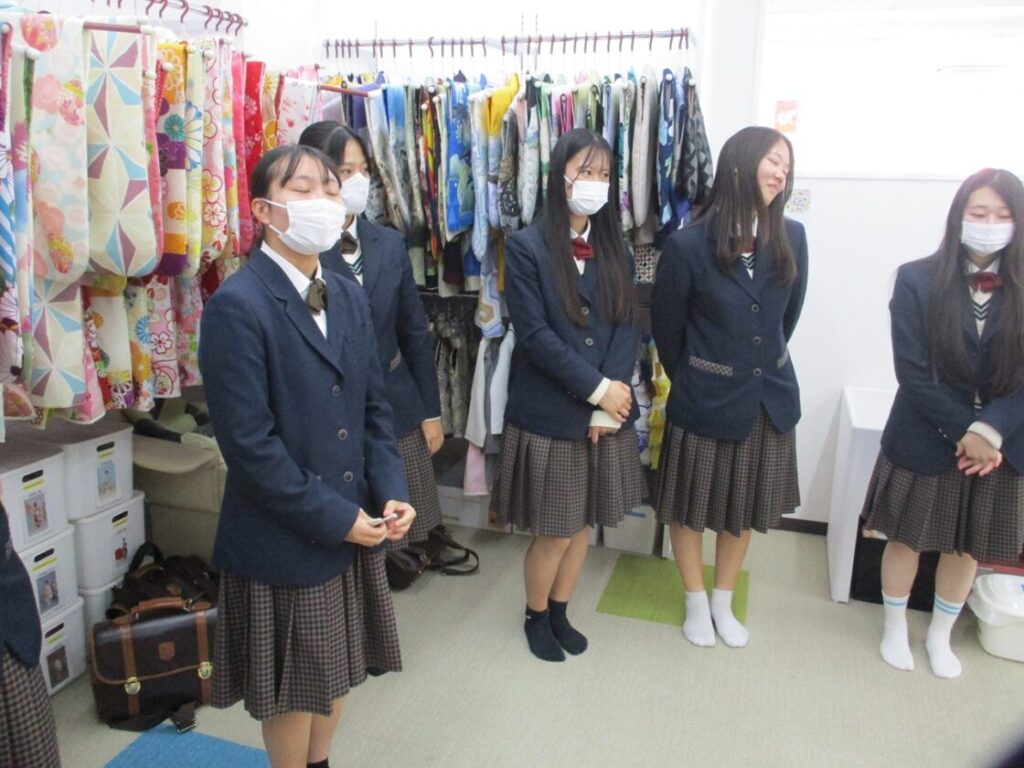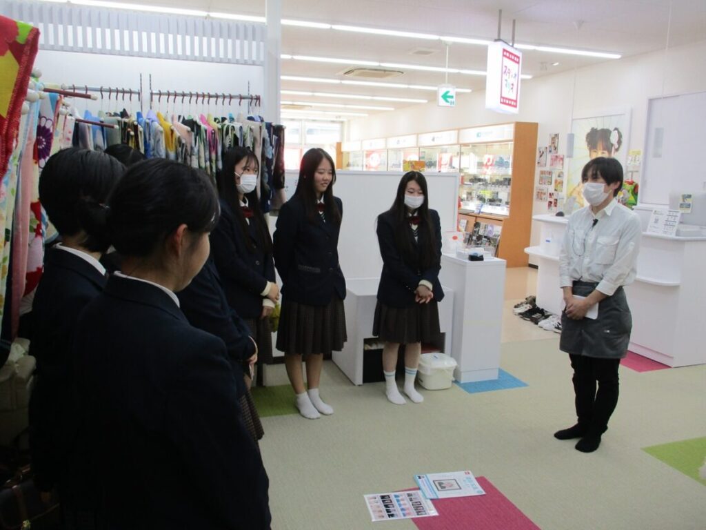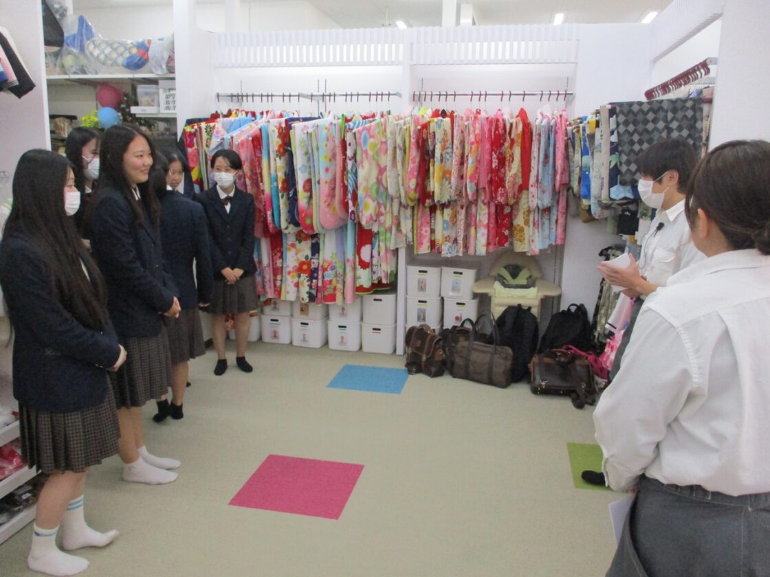 ライフプランニング企業見学④ 商業科 2025.11.11 スタジオマリオ津山・津山店にお伺いして人生の節目に撮影することが多い記念写真について学びました。一人の人生であろうとも家族との人生であろうとも思い出となる写真はとても重要なものだと生徒は考えています。お店の方から記念写真にまつわる由来や働かれている方の思いをお聞きし、より一層写真の大切さや働くことに対しての心構えを学びました。そして、カメラに興味のある生徒は取り方を体験して、嬉しそうでした。