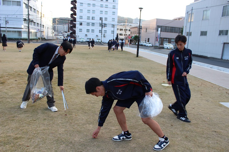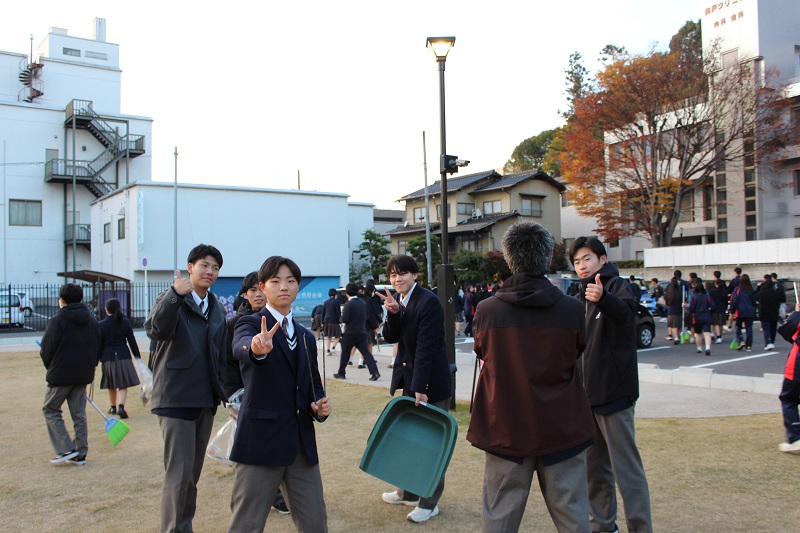 12月6日に開催される津商モールに向けて、学校から城下スクエア周辺を清掃しました!各学年や各部活動からたくさんの生徒に参加してもらい、落ち葉やポイ捨てされているゴミを、袋いっぱいに拾いました。