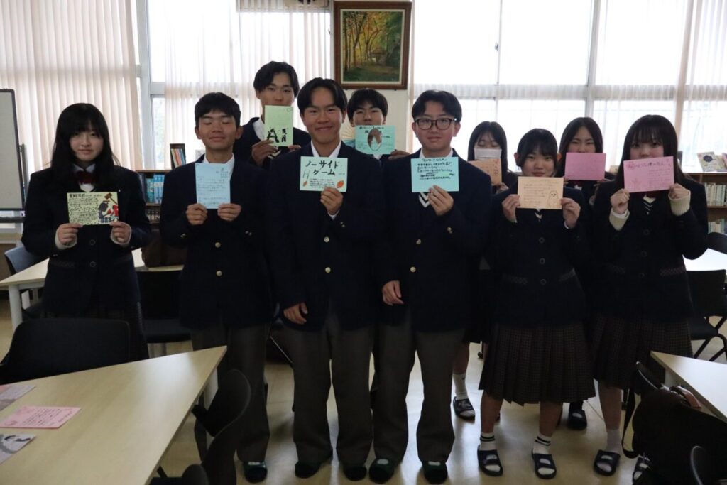 1~3年の図書委員が自分達が興味のある、宣伝したい本をカードにまとめて、POPを作成しました。絵を描いたり、色とりどりにしたりと自分の思いをのせました。津山市立図書館で、1月中旬より展示されます。ぜひ、津山市立図書館にお寄りの際は図書委員のPOPをご覧ください。