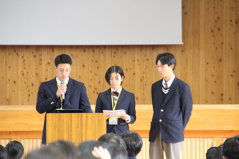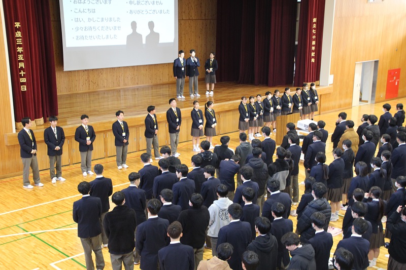 津商モールに向けたLHRを行いました 地域連携 2025.12.04 12月3日(水) 12月6日(土)開催の第17回津商モール直前となったこの日、LHRの時間は全校生徒が体育館に集合し、社長・副社長を中心に進行されました。接客用語の唱和、当日に向けての確認事項、社長からのメッセージを通じて、全体コンセプトである「笑顔の循環、感謝のお返し」を津商生一丸となって達成できるよう、気持ちを1つにする時間となりました。 多くのお客様のお越しを生徒一同お待ちしております。