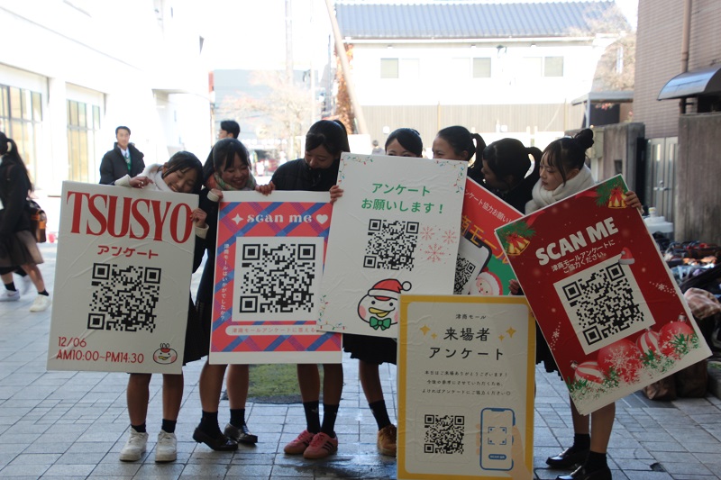 コンシェルジュ、アンケート係、入場者カウント、総合案内など、お客様に一番近い場所で津商モールを盛り上げます。そして、実際に販売を行う1年生も!