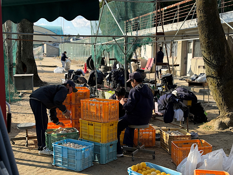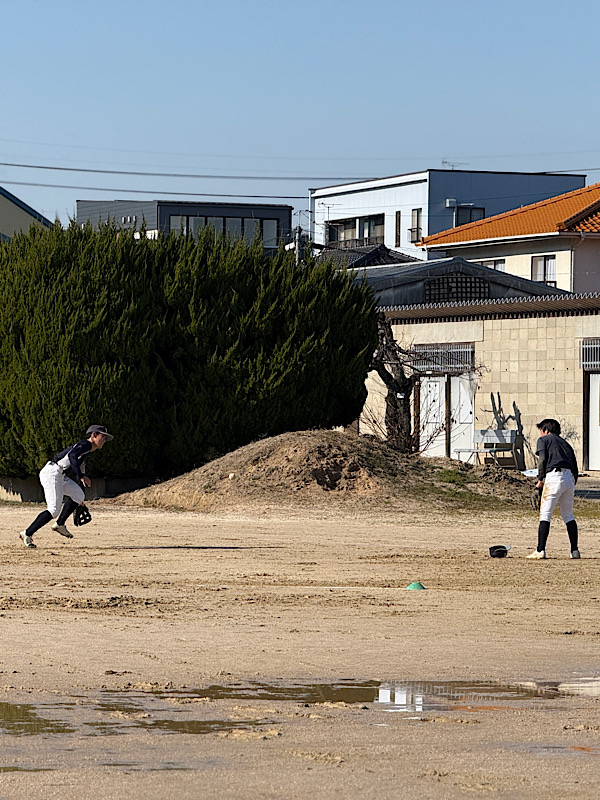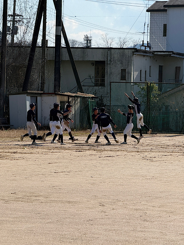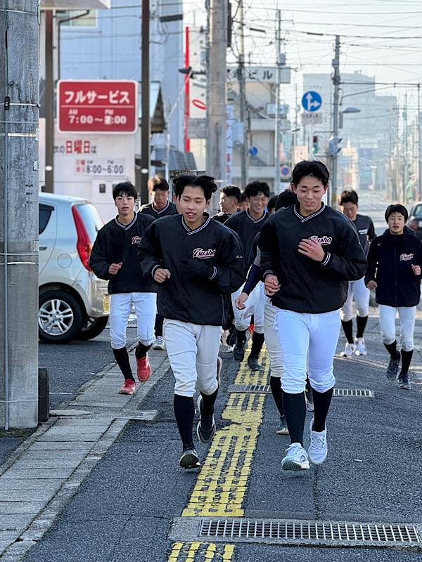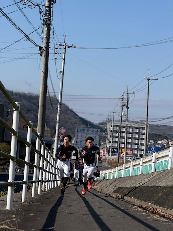 今年の午前中も練習納め恒例の坂道ダッシュ。学校から坂道までゴミ拾いをしながら走っていき、到着後は坂道を1時間程度走りました。へとへとになりながらも最後までやりきることができました。その後、走って学校に戻り、ノック、ロングティーで練習を終えました。