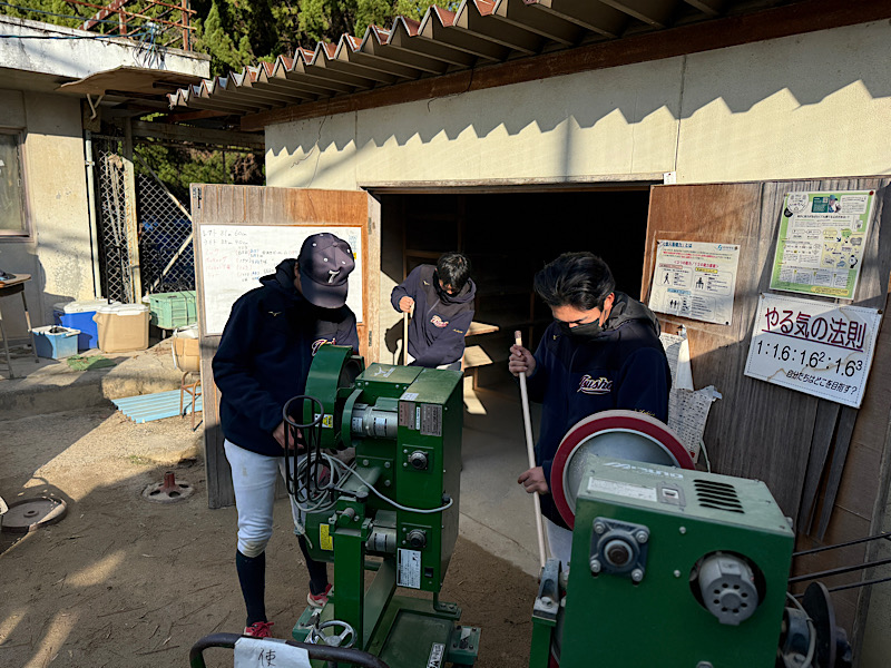 午後からは掃除。1年間お世話になった部室や野球用具、そしてグラウンドや練習用具を保管している倉庫などに感謝し、細かいところまで全員で協力しあって行うことができました。部室のレイアウトも自分たちで考え、恒例の席替えを行い、掃除を終えました。