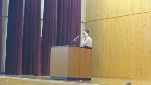 始業式で弘中校長は「今年は60年に一度と言われる丙午の年。歩みを止めることなく、新しい自分を知る一年にして欲しい。今年度の初めに考えたそれぞれの漢字1文字はどうだったでしょうか。来年度はどういった漢字を自分のテーマにするのかもしっかり考えて欲しい」と式辞の中で述べました。