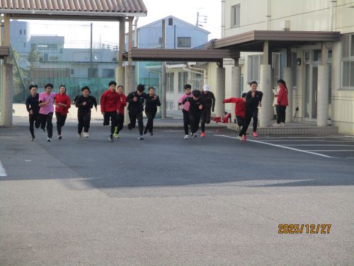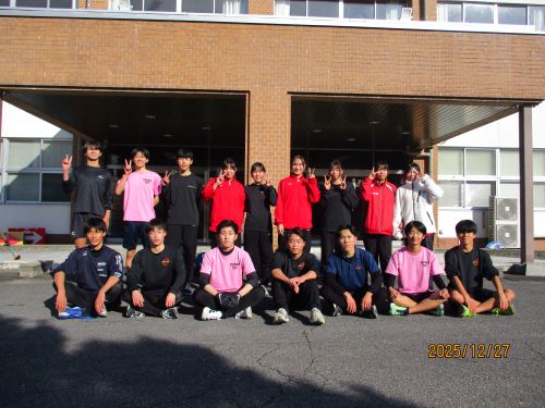 年末年始の陸上競技部 津商ライフ 2026.01.14 12月28日(日)練習納め 2025年最後の練習は学校で。 1月5日(月)練習初め 2026年スタートしました。毎年恒例の出雲大社へ初詣。 今年もしっかり目標を持って練習に励みます。寒い日が続きますが冬季練習頑張ります。 1月12日(月) 本日は成人式を迎えた卒業生6人が練習に参加してくれました。雪のため、練習は校舎内で行いました。