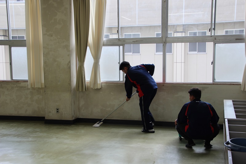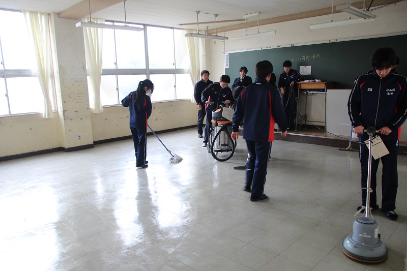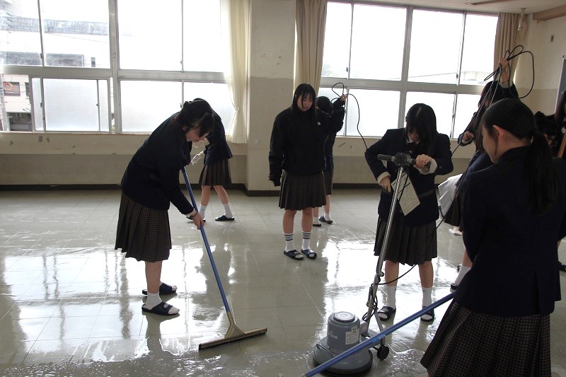 教室のワックスがけ(3年生) 津商ライフ 2026.01.30 1月28日(水) 今日で卒業考査も終了しました。3年生は、各教室をきれいに清掃し、ワックスがけを行いました。学校に登校するのもあと6日。1日1日を大切に過ごしていきましょう。