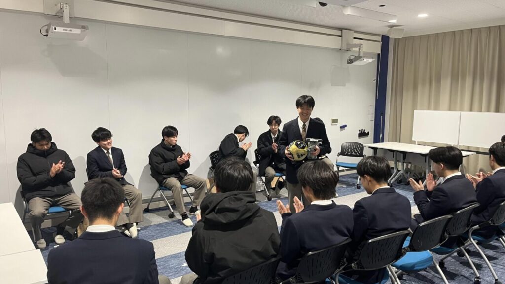 試合後はラストミーティング、3年生から本日のMVPへのサプライズプレゼント・3年生全員から後輩へ「今、伝えたいメッセージ」など後輩への愛を感じる時間でした。津商サッカー部のバトンを見事に繋いでくれた3年生には感謝しかありません。