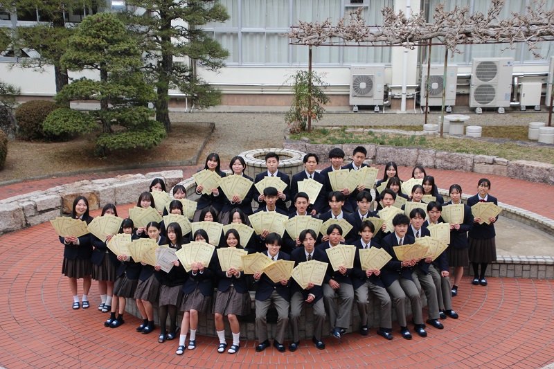 胸いっぱいに広げた各種検定の合格証書。3年間コツコツ積み上げてきた努力の結晶です。「職業教育技術顕彰」として、今年度は33名の3年生が卒業式前日に表彰されます。ここまで頑張れたのは、放課後まで一緒に頑張った仲間がいたからこそ。最初は難しかった資格も、今では大きな自信になったはず。この達成感を胸に、それぞれが新たな道へのスタートです!