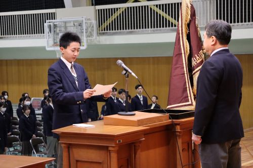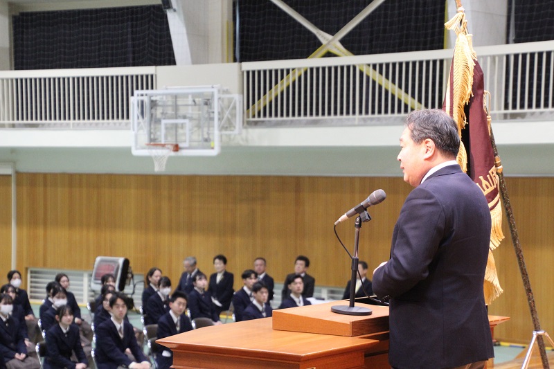 田村同窓会長をはじめ、同窓会役員の方々のご臨席を賜り、3年生の同窓会入会式がありました。3年間の高校生活を支えて下さった同窓会に加わることになります。今後は103期の津山商業の同窓生として母校を支えてください。