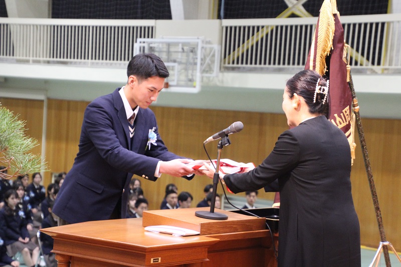 3年間の高校生活を津山商業で過ごし、今日卒業を迎えた154名の皆さん卒業おめでとうございます。4月からはそれぞれの道を歩み始まることになります。道はそれぞれ違えども「自彊」の精神を忘れず、夢に向かって歩いていってください。