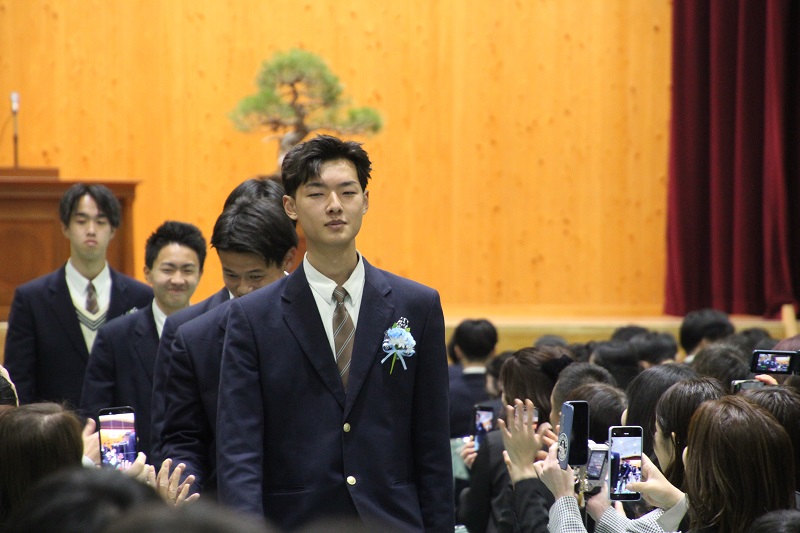 澄み渡る青空の下、地域ビジネス科78名、情報ビジネス科76名の154名が旅立ちの日を迎えました。