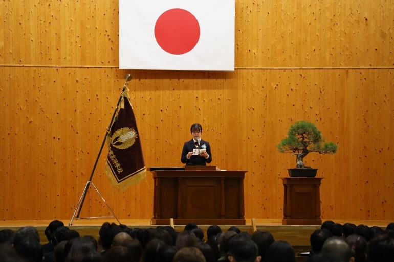 『晴れた日は晴れを愛し 雨の日は雨を愛す 楽しみあるところに楽しみ 楽しみなきところに楽しむ』の言葉のように、すべては自分次第。あるがままを受け入れ、前を向いて進んでください。103期生の皆さんの飛躍と幸せを祈念します。