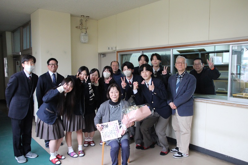 津商購買閉鎖へ 津商ライフ 2026.03.26 津山商業の購買が、今年度をもちまして閉鎖となります。三十数年に渡り、購買を支えてこられた内田さんも、ここでご退職となります。この日は、在校生と教員が集まって、感謝の気持ちを伝える時間をとりました。毎日のようにパンを買いに通った生徒は数知れず。本当にありがとうございました。