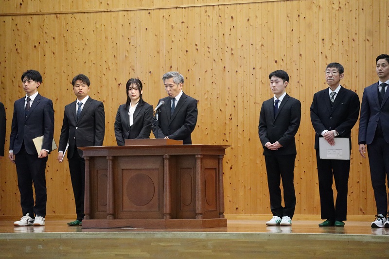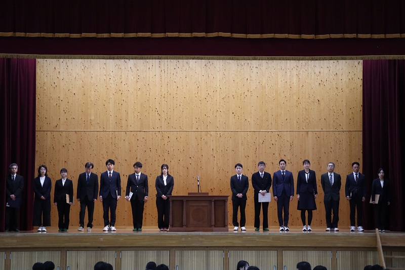 令和8年度新任式 学校行事 2026.04.10 4月8日(水) 昨年度末の人事異動で十数名の先生方が転退任されました。新年度になり新たに津山商業に着任された先生方の新任式があり、多くの先生方をお迎えしました。津山商業に新たな風を吹き込んでいただき、刺激をいただければと思います。よろしくお願いいたします。