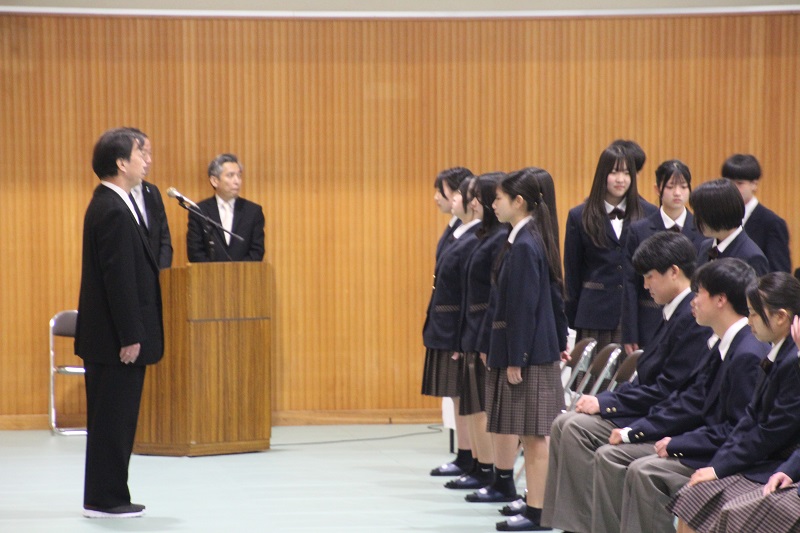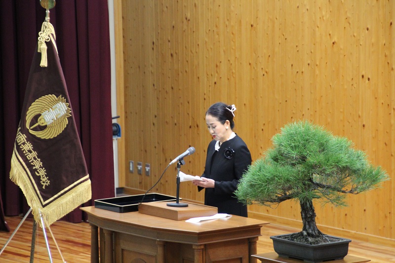 弘中校長は式辞で「津山商業での3年間をデザインし、そのデザインを形に変える決意と覚悟を持って欲しい」と述べました。