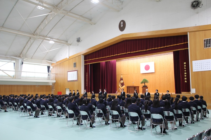 青空のもと、令和8年度入学式が行われました。新しい制服に身を包み、149名の新入生が入学を許可されました。