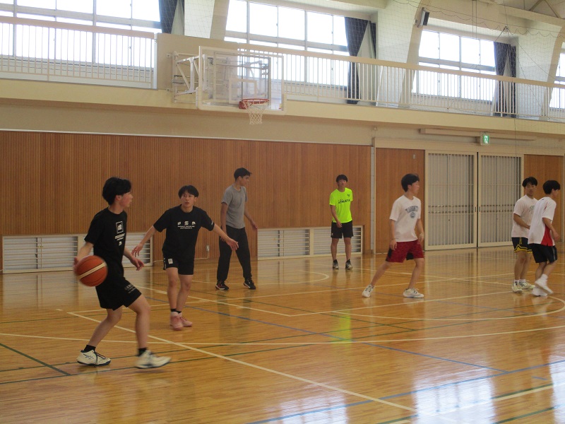 男子バスケットボール部は、4月26日(日)、29日(水・祝)に行われるチャレンジリーグの試合を目前にして、熱心に練習に取り組んでいます。選手同士で相談しながら、シュートやセットプレーの練習を行っています。新入生も入部してくれて部員も増えました。全勝できるように頑張ります!