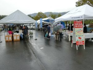 「森林を考える岡山県民のつどい」に参加しました アクティブプラン 2017.11.21 10月28日(土) 「森林を考える岡山県民のつどい」楽しみながら森林・林業の魅力や重要性を知っていただけるイベントに「販売実習」の生徒7人が参加しました。当日は、雨天で寒く悪コンディションの中、ちらし寿司・巻き寿司や柏餅などの総菜、トマト・キャベツ・タマネギなどの野菜、高梨・あわし柿やシャインマスカットなどの果物を販売しました。